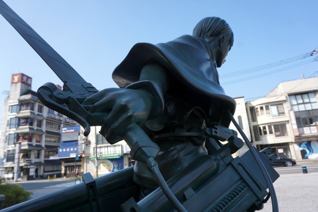 銅像プロジェクトはクラウドファンディングで有志からお金を集めて実現したらしい。しかも、集まり過ぎたらしい笑。残ったお金で、日田駅前にリヴァイ兵士長の像も作っちゃったぞ!というのがこちら。あえての画角。「リヴァイちっさ!」とか言いたい人は、現地まで行って現物確認してください。