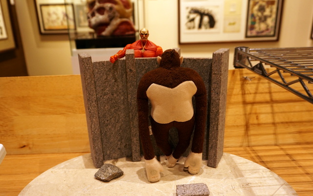 著者が執筆に使ったデスクの再現にシレっと飾られていた、獣の巨人のぬいぐるみがめちゃくちゃカワイイ。
