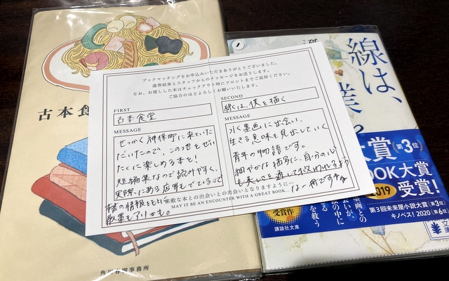 事前にアンケート回答しておくと、オススメ本を紹介してくれるという「ブックマッチングサービス」というのもありまして、ちゃっかり利用してみました。オススメされたのがこちらの2冊。『古本食堂』を読みましたが、絶妙なマッチングでした。出だしが帯広だったり、遺産相続の話だったり。50代という年齢とこのホテルに泊まろうとする嗜好性だけでかんたんに見つかりそうな選書ではあったけども笑。