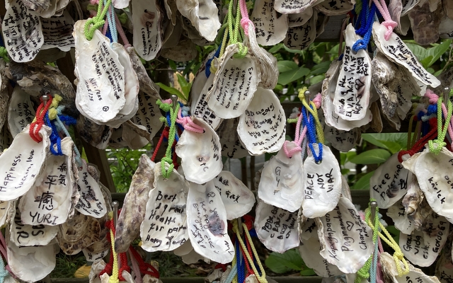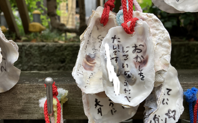 楠の巨大な霊木から造顕された二体の観音像のうち、衆生済度を祈願して海中へ奉じられた一体が現在の横須賀あたりの洋上に忽然と顕れて鎌倉へ運ばれ、海光山慈照院 長谷寺開創の礎となった……そうな。海を漂っていた観音像を横須賀あたりまで導いてきたのがご尊体に付着していた「かきがら」だったということで、境内には「かきがら稲荷」というお社もあります。で、かきがらにお願い事を書いて奉納している人が大勢いるようなのですが、日本語よりも圧倒的に外国語のほうが多い!という……