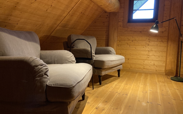 ログハウスに泊まるのは(たぶん)はじめてのことで、冬場の快適性が重視されたつくりに感嘆しきりなわけですが、しかしよく見ると、丸太の境目にけっこう埃が溜まるっぽい。掃除ぎらいには向かないかも。
