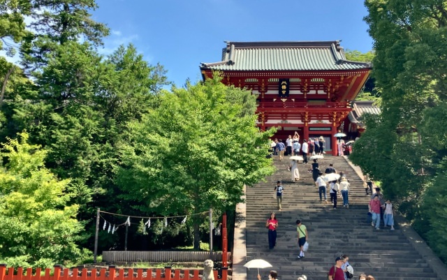 鶴岡八幡宮に到達する頃には炎天下で、午前中まだ10時ころだったので、混雑がそれほどでもなかったのは救いでした。