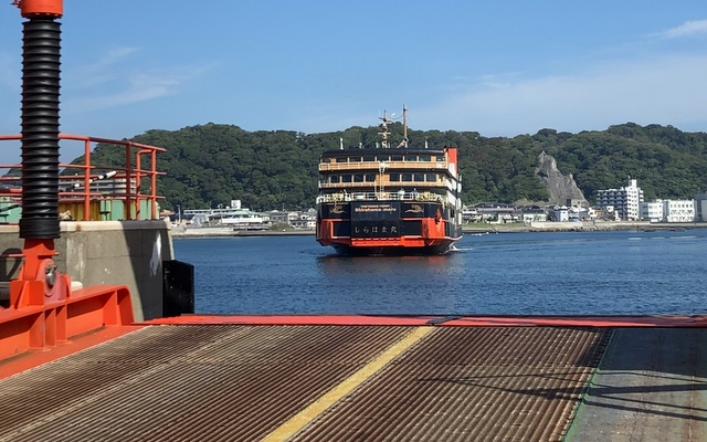 京急久里浜駅から満員バスに揺られてフェリーターミナルに到着すると、ほどなく黒船がやってきました。