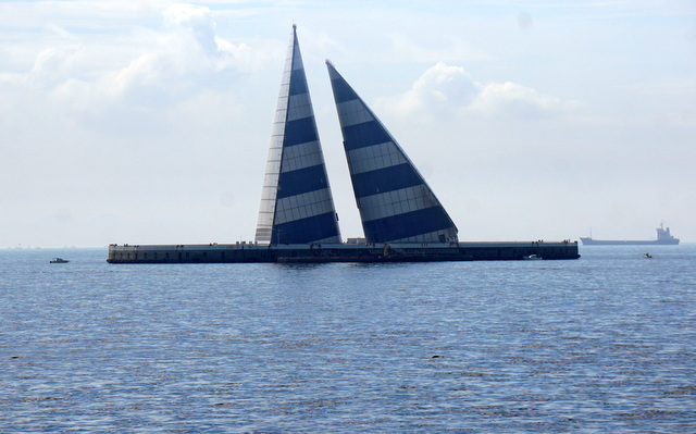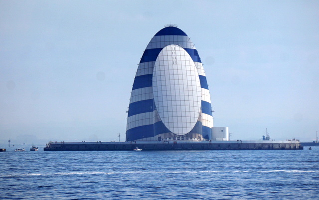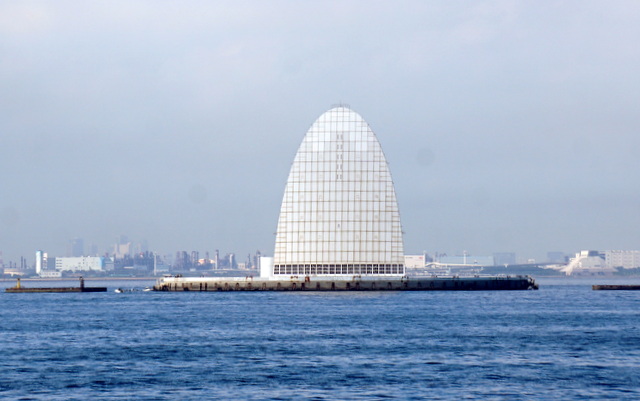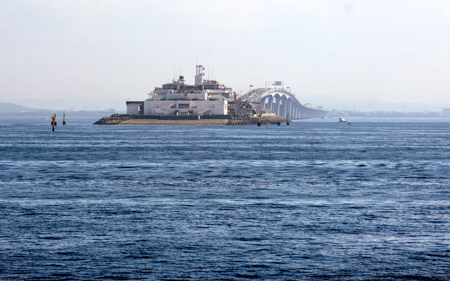 そして、東京湾アクアライン風の塔です。トンネル内の排気ガス換気用につくられた建物で、千葉県側の真横から見ると真っ白い帆のように見えますが、